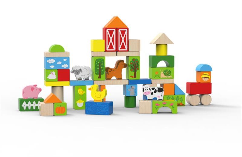 Skab en verden af kreativitet og fantasi for de mindste med dette farverige sæt af 50 træklodser! Spanden er ikke blot praktisk til opbevaring, men også charmerende som en del af legetøjet. Med klodser i assorterede farver og søde bondegårdsdyr opmuntrer