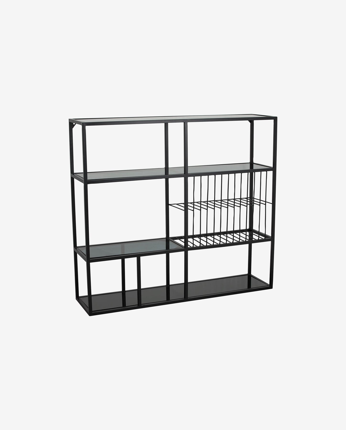 RUR Køkkenhylde i Sort Jern med Glashylder - Elegant og Praktisk Opbevaring RUR køkkenhylden er en stilfuld og funktionel løsning til opbevaring og organisering i køkkenet. Fremstillet af sortlakeret jern og udstyret med hylder i sort glas, kombinerer d