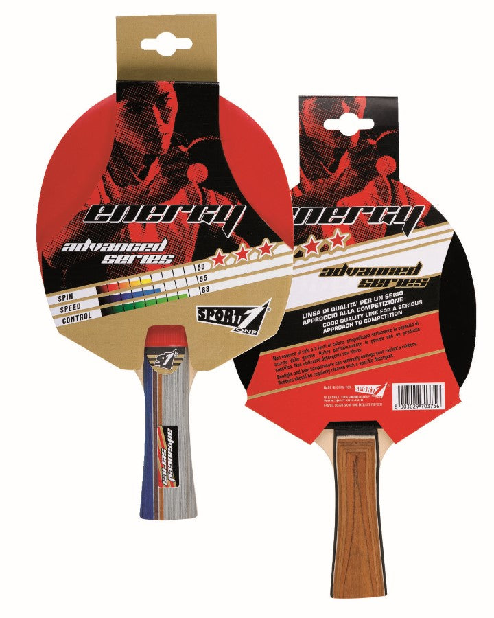 Sport1 Bordtennis Bat Advanced Serie ''Energy'' (3 stjerner) - Fra Italienske Sport1 1 stk. 3 stjernet bordtennisbat Spin: 50 (ud af 100) Speed: 55 (ud af 100) Kontrol: 88 (ud af 100) - Bordtennis - Billig fragt og hurtig levering