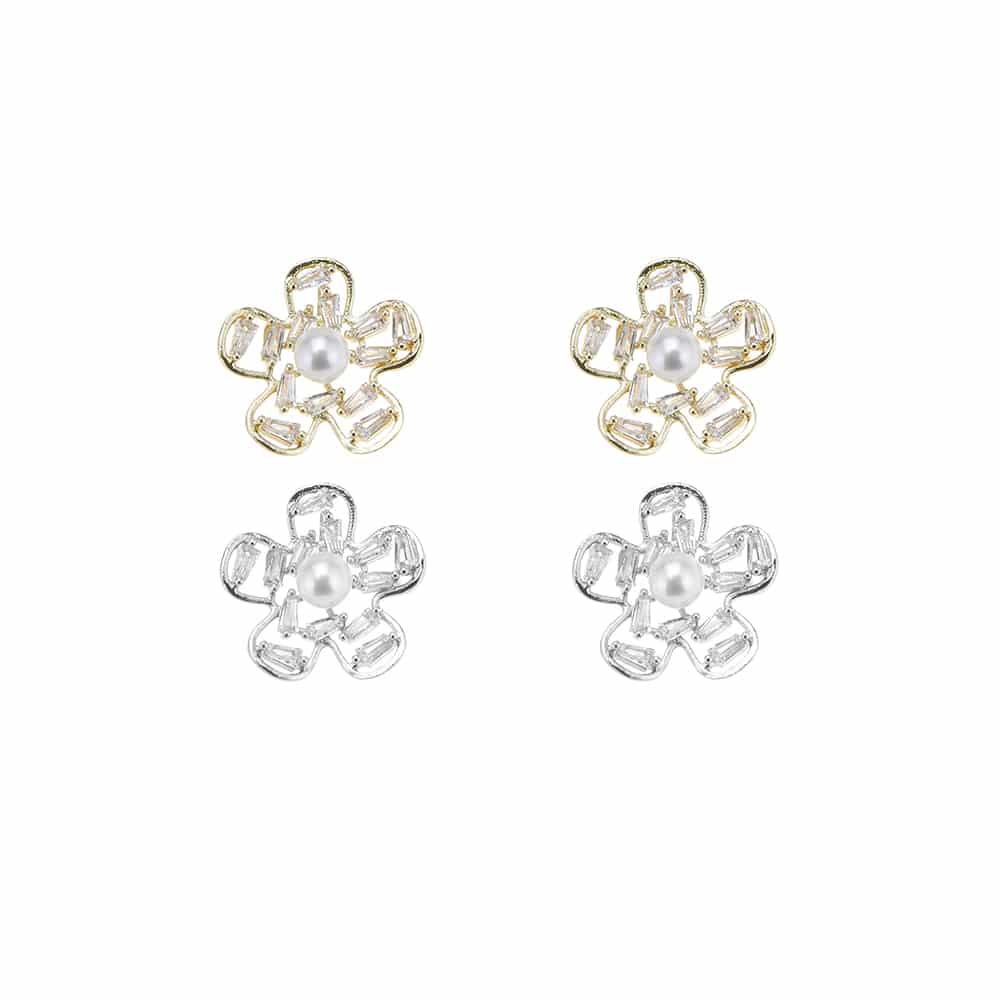 Tilføj et strejf af elegance til din stil med disse smukke blomster-ørestikker fra Satana. Hver ørestikker er udsmykket med en glitrende perle og en guld- eller sølvbelægning, der giver et sofistikeret look. Perfekt til enhver lejlighed, fra hverdag til fest. Køb dem nu på udsalg - 3 for 99 kr. - og spar penge på smukke og billige øreringe!