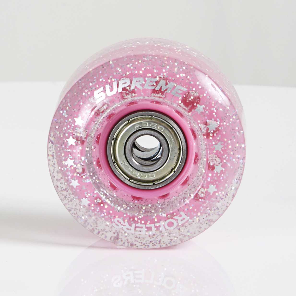 Flotte pink glitter hjul til dine side by side rulleskøjter. Passer til alle rulleskøjter. Størrelse: 54 x 32 mm. Abec 7 kuglelejer inkluderet Hjulhårdhed: 82A Der er 4 stk. i pakken.