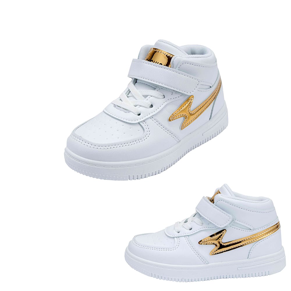 Børne Støvler\nTag skridtet ind i et par af disse stilfulde støvler, der er designet til at holde trit med dit barns eventyrlystne liv! Vores støvler kombinerer praktisk komfort med et strejf af glamour, takket være de skinnende guld-detaljer. Uanset om d