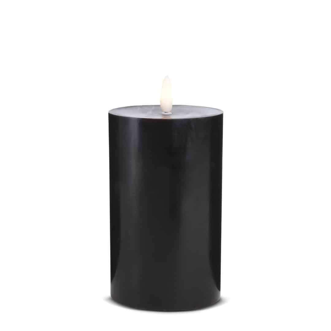LED stearinlys 15 cm - med 3D flamme\nNyd en god film i sofaen med vores LED stearinlys tændt, når mørket indbyder til samvær og hygge. Du får her et naturtro og flot stearinlys i 7,5 x 15 cm. Led stearinlyset er produceret i paraffinvoks af rigtig god kv
