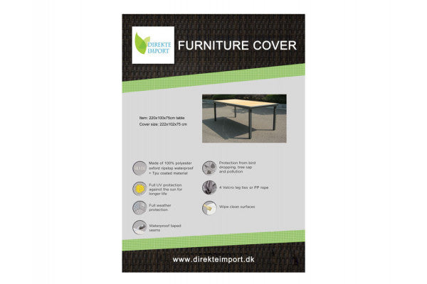 Beskyt dit havebord med dette overtræk i størrelsen 220x100 cm fra KopK. Vores havemøbelovertræk er lavet af høj kvalitet og sikrer, at dit bord forbliver beskyttet mod vind og vejr. Med vores overtræk kan du forlænge levetiden på dit havebord og undgå unødvendig slid. Køb dette overtræk til en billig pris og spar penge på udsalg. Gør et godt køb og invester i kvalitet til din have med dette overtræk fra KopK. Beskyt dit havebord og spar penge med vores gode tilbud!