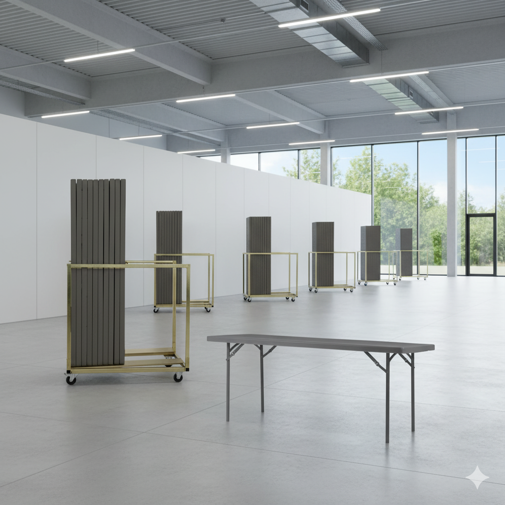 21 Zown XL180 klapborde inkl. bordvogn til Perfekt til nem transport og opbevaringMed vores sampakke, der indeholder en bordvogn og 21 Zown XL180 klapborde, får du en komplet og smart løsning til opbevaring og transport af dine borde. Ideel til både sto