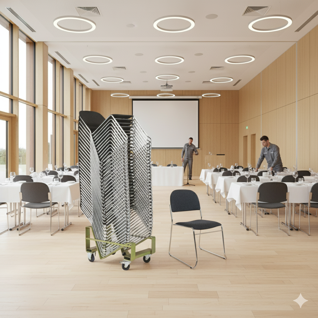 30 Trend Økonomi stabelstole i Sort/Krom inkl. stolevogn - Sampakke med Gratis VognOpgrader din indretning med Trend Økonomi i Sort/Krom - den ideelle sampakke til effektiv opbevaring og organisering. Dette sæt kombinerer stil og funktionalitet, hvor du