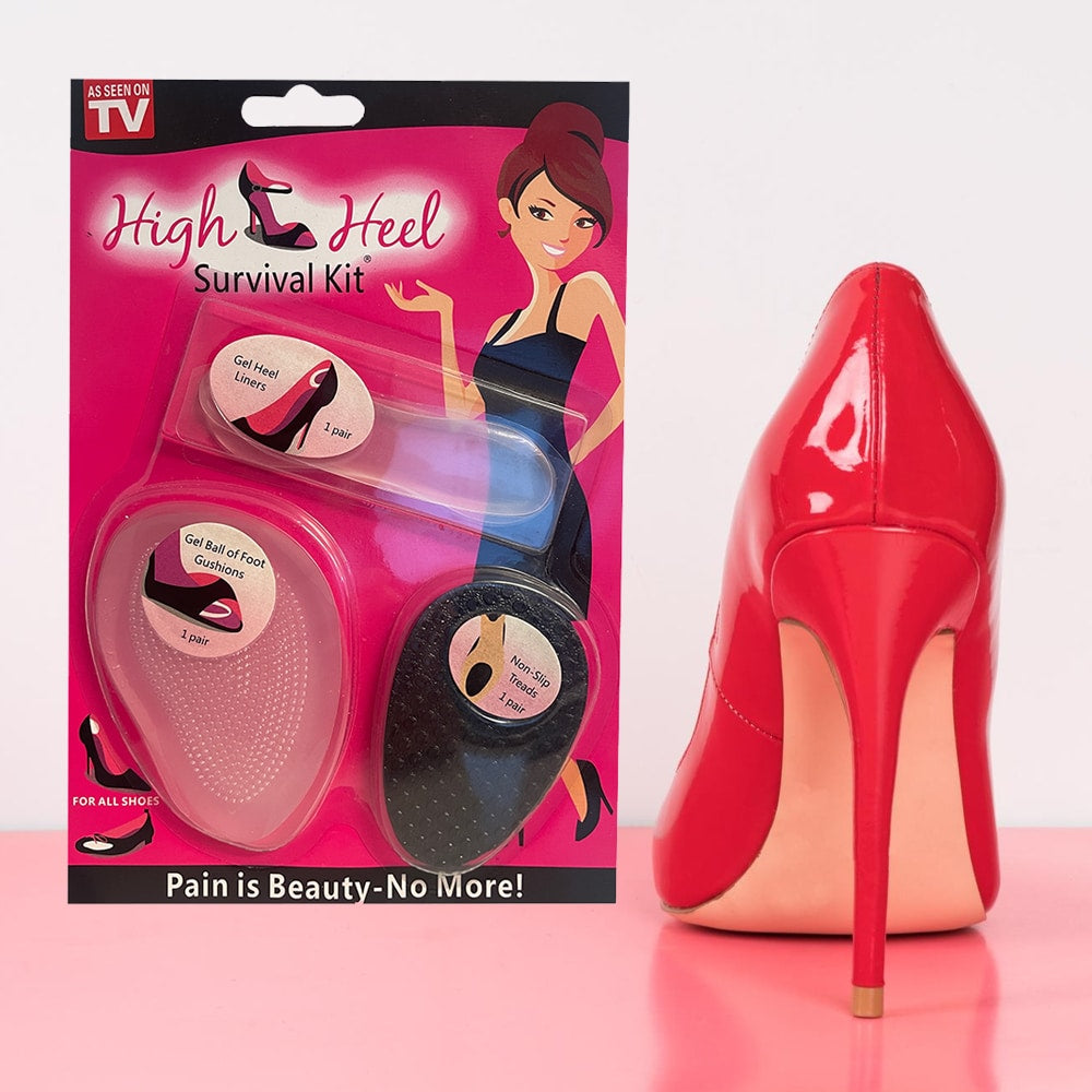 Survival Kit til høje hæle Oplev komfort og støtte hele dagen med vores Survival Kit til høje hæle. Dette sæt er designet til dig, der elsker at bære høje hæle, men ønsker at undgå smerter og ubehag. Med dette kit vil dine fødder ikke kun se fantastiske