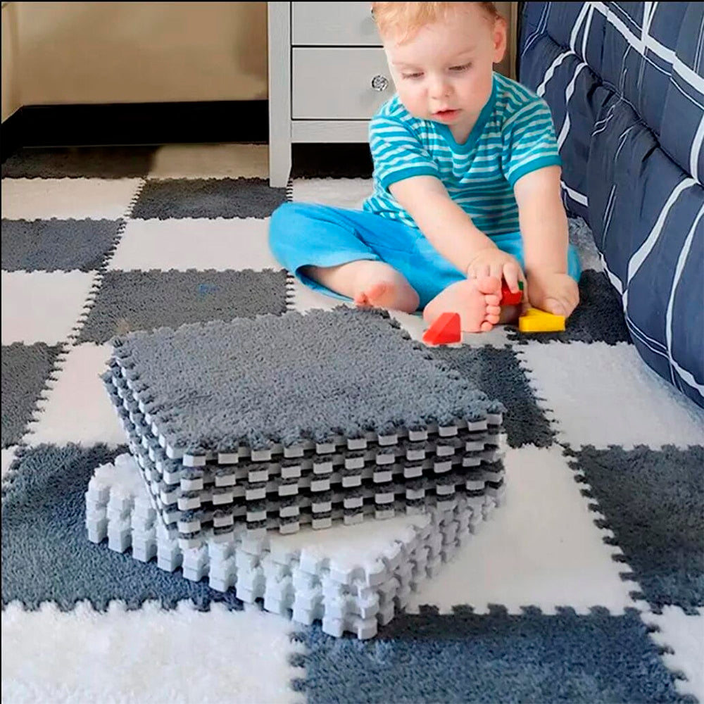 Legegulv 30 x 30 cm\nOpdag den perfekte kombination af leg og læring med vores puslespilsgulvmåtter! Med et sæt på 9 bløde EVA-skummåtter får dit barn et multifunktionelt legeområde, der er både sikkert og stimulerende. Hver måtte er 30 x 30 x 1 cm i stør