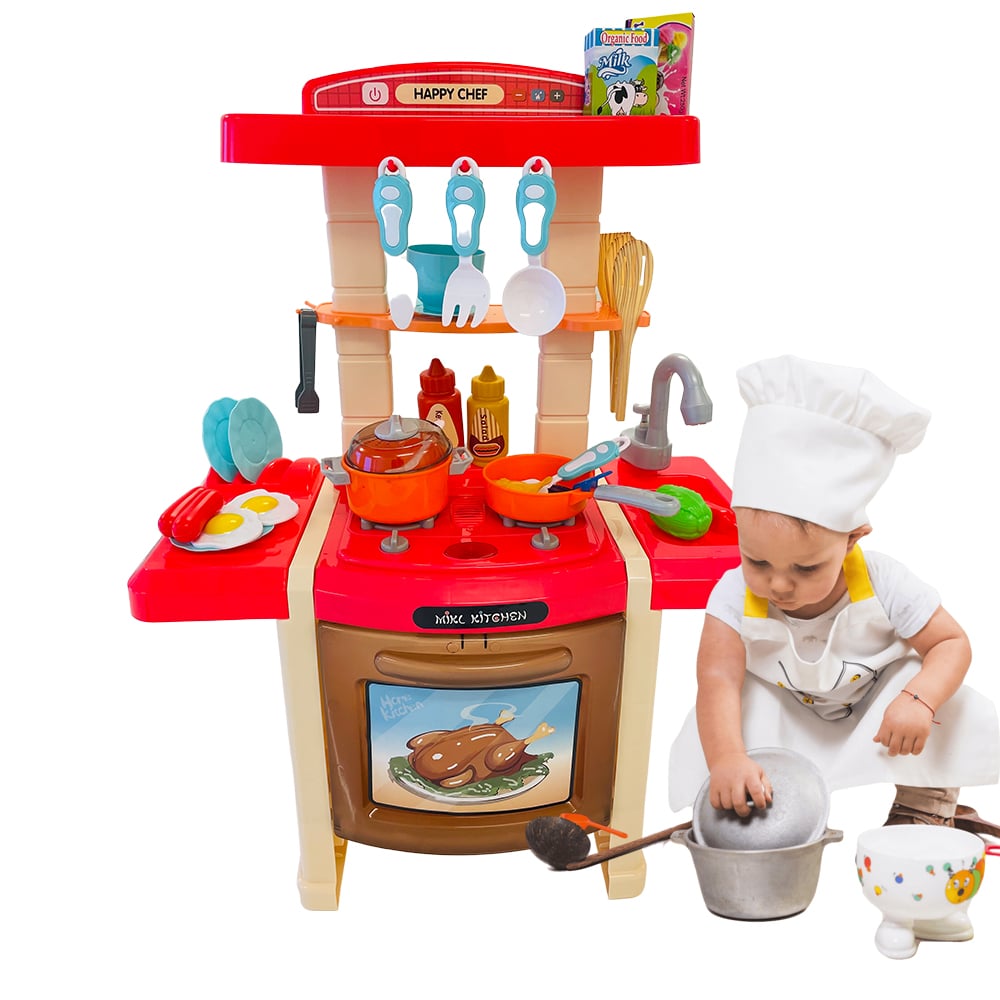 Legekøkken 33 dele\nLad dit barn skabe magi og madlavningssjov med vores skønne "Spraying Mist Kitchen" legetøjskøkken! Forestil dig dine små mestre i kulinarisk kunst, der udforsker en verden af smag, kreativitet og leg med dette utrolige 33-delede køkke