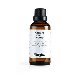 Allergica Kalium carb. comp. 50ml. - Håndpotenseret homøopatisk lægemiddel, som indeholder aktivstoffer i stærkt fortyndet og bearbejdet form. Brug af anden medicin: Midlet kan kombineres med almindelig kemisk medicin. Graviditet og amning: Midlet kan indtages under graviditet og amning. - Allergica - Billig fragt og hurtig levering
