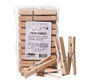 I hobbyprojekter, opslagstavler, navneskilte og lignende kan man desuden også bruge tøjklemmer i naturligt materiale. Pakken indeholder 50 klemmer.
