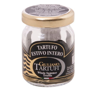 Oplev de ekstraordinære sorte sommertrøfler, en delikatesse med en unik smag og en raffineret aroma. Disse trøfler er bevaret med naturlige ingredienser, herunder deres egen trøffelsaft, hvilket fremhæver deres autentiske smag. Præsenteret i en smuk glask