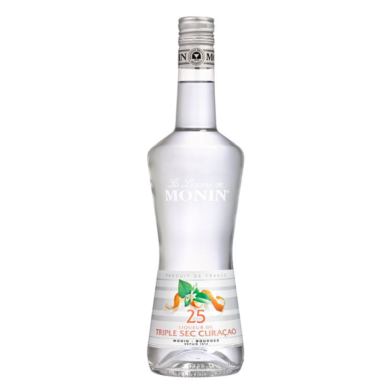 Monin Liqueur Triple Sec er en forfinet fransk likør, der byder på en klar og gennemsigtig essens og en rig aroma af soltørrede appelsinskaller fra Haiti. Med en alkoholprocent på 38% og en markant bitter appelsinsmag, leverer denne likør en robust smagso