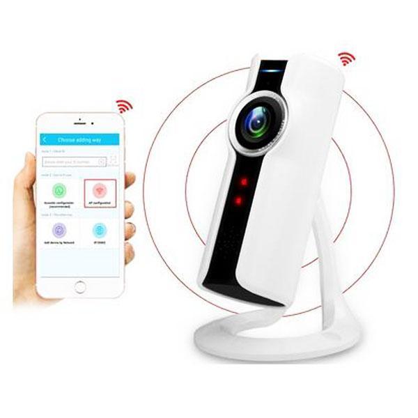 Smart WiFi webcamera Du får her et smart lille og elegant IP-kamera der opretter direkte forbindelse til dit WiFi-netværk og kan tilgås via smartphone og tablet og du kan derved overvåge hjemmet i lyd og billede. Kameraet har 360 graders panorama, HD-opl