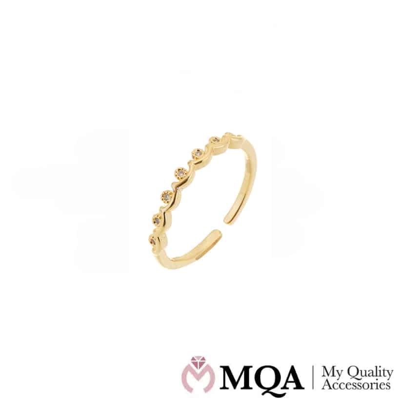 Ring Pift dit look op med denne guldfarvet ring med en række smukke sten. Du får her en smuk ring, du helt sikkert blive rigtig glad for og som passer perfekt til fest og andre sammenkomster. Smykker fra My Quality Accessories kommer i et hav af desig