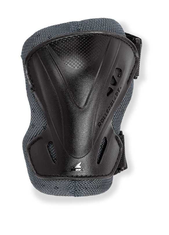 Rollerblades topmodel med god pasform og optimal beskyttelseBeskyttelsen ydes af en robust og ergonomisk plast-skal monteret på en fast men behagelig foring. Fastholdelsen til albuen sker med elastik bånd der justeres og låses med velcro