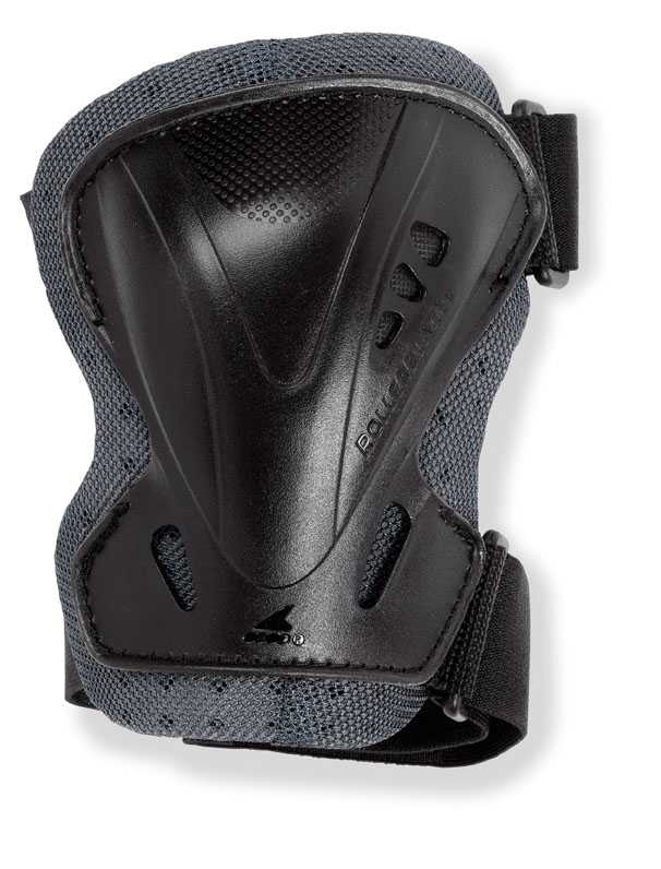 Rollerblades topmodel med god pasform og optimal beskyttelseBeskyttelsen ydes af en robust og ergonomisk plast-skal monteret på en fast men behagelig foring. Fastholdelsen til knæet sker med elastik bånd der justeres og låses med velcro