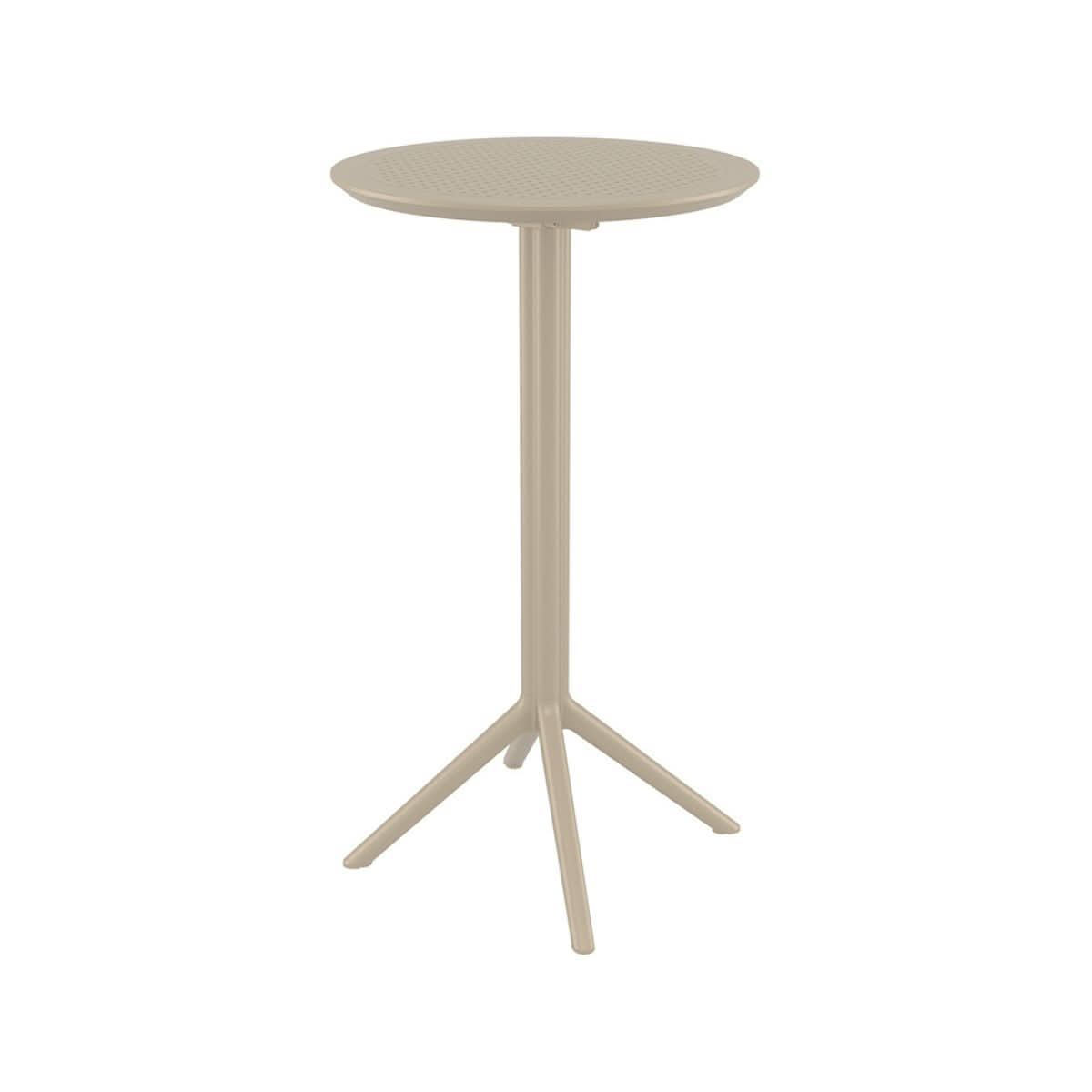 Billig og praktisk Sky barbord med vippefunktion - perfekt til små rum! Dette elegante Sky barbord i taupe fra Zederkof er perfekt til små rum, hvor pladsen er begrænset. Bordet har en vippefunktion, der gør det nemt at folde sammen og gemme væk, når det ikke er i brug. Bordet er lavet af robust plast og har en diameter på 60 cm, hvilket gør det ideelt til en enkelt person eller et par. Få det til en billig pris på udsalg!